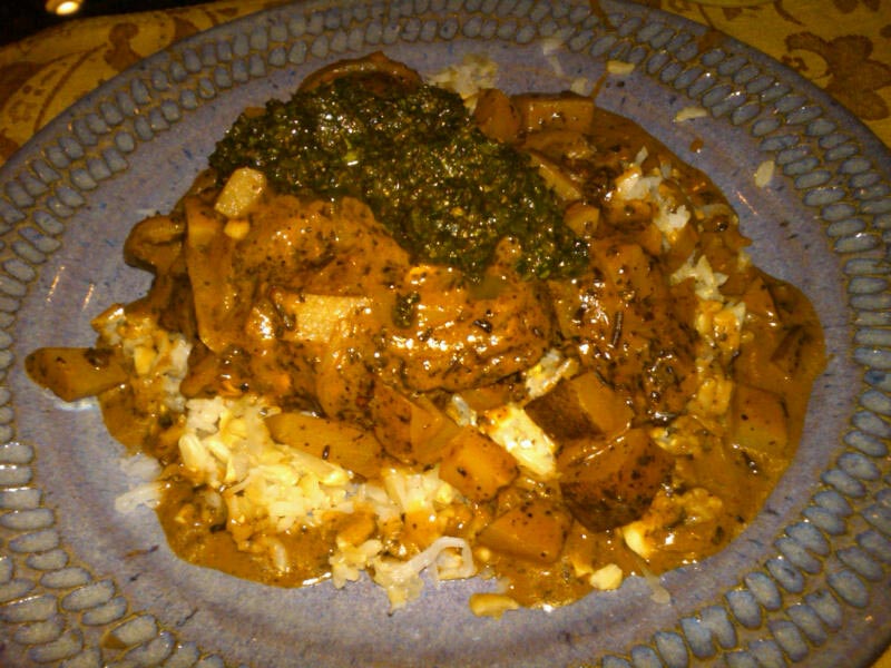 This multi-step recipe was easy and fun to make, albeit a bit time consuming. It took me a total of 3 hours from start to finish, maybe with a tiny bit of horse-play. The Curry Tea Spice coated on the salmon looked very inviting. So many different flavors in one that you could hardly taste the “fishiness” of salmon which was great. The Coconut Rice was fantastic. A great combination of coconut, nuts and rice. The Tea-Coconut Sauce turned out to be orangey-red and reminded me of an Indian richness. My main contention is that each level was great on its own, but as a combination I did not quite get how all these flavors matched. Will really liked it, especially since the salmon flavor was completely hidden beneath the garden-variety of seasonings.