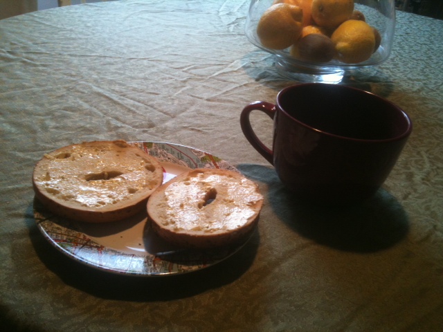 I tend to go in moods with my tea, and lately, each morning must begin with a chewy onion bagel and a cup of rich English tea. And then I catch up on my news for the day and begin writing. How do you start your day?